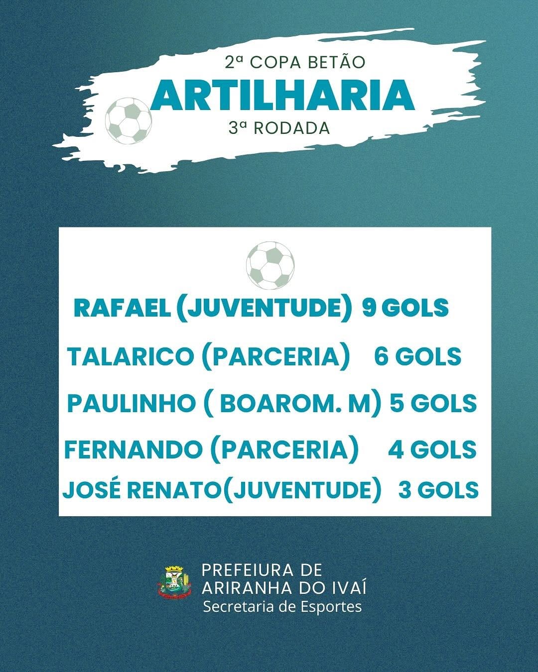 2ª Copa Betão de Ariranha do Ivaí chega à terceira rodada com disputas acirradas. Confira a classificação atualizada, artilharia da competição e como estão as equipes