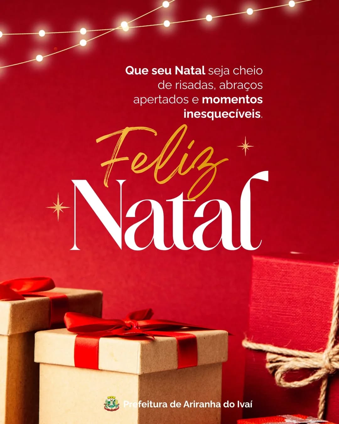 Que o Natal renove a esperança, fortaleça a fé e encha os lares de amor, paz e união. A Prefeitura deseja a todos um Feliz Natal e um Ano Novo repleto de conquistas!