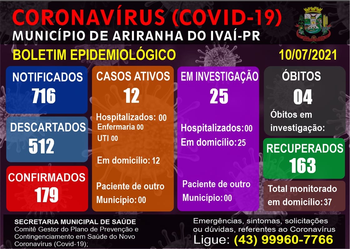 Hoje 1 coleta, 3 recuperados e 1 POSITIVO