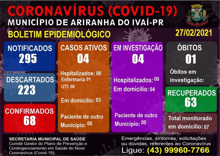 Informativo epidemiológico Ariranha do Ivaí | Covid - 19 - 07/03/2021